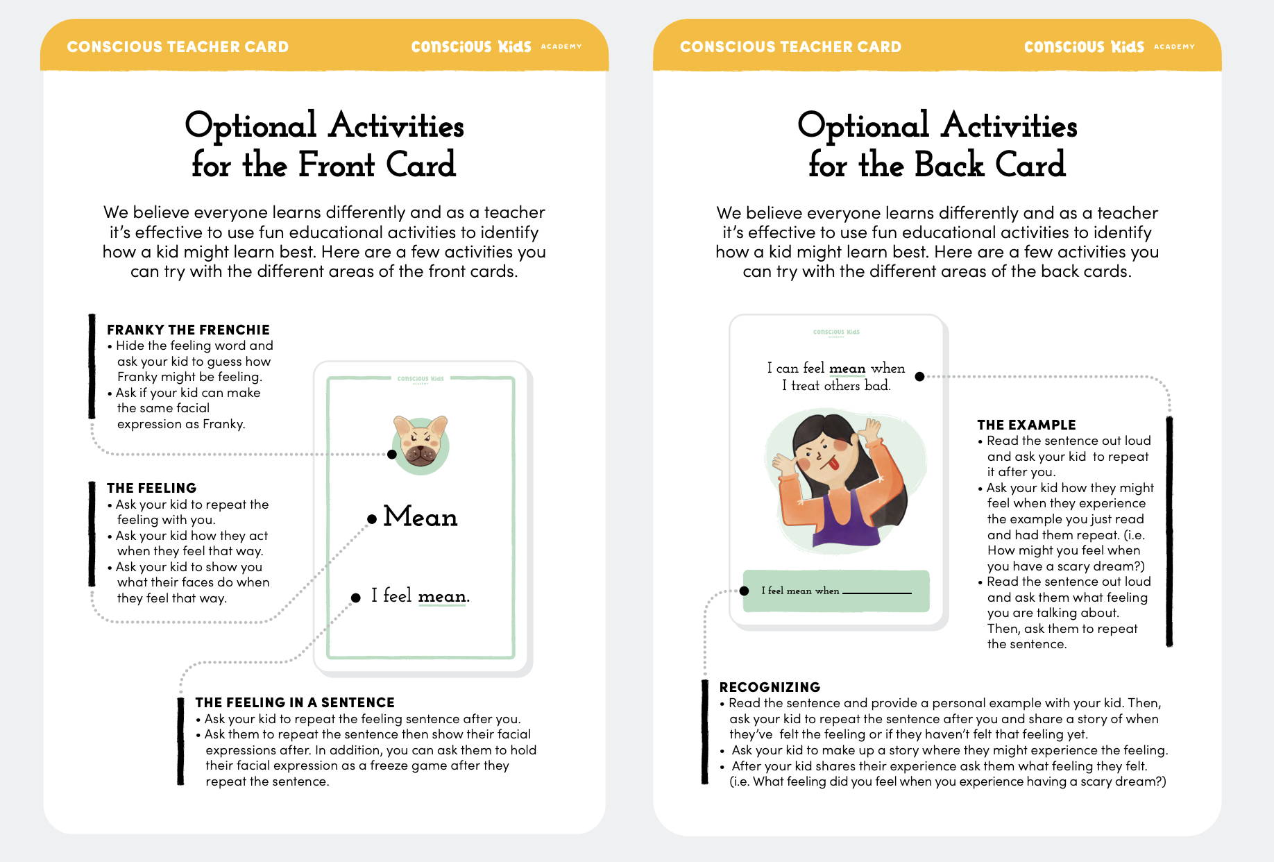 Start with one to three cards and observe how your kids are absorbing the new information. Try the different tips we mention in the Parent Teacher Cards.
